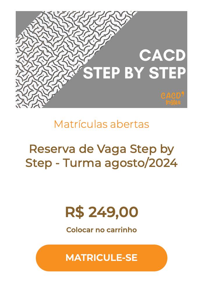O CACD Step by Step é um curso inédito de língua inglesa para aspirantes à carreira de diplomata. Nesse curso, trabalharemos conteúdos e habilidades desde o nível básico zero até completar o nível alto-intermediário, tudo isso com foco nas provas de inglês do CACD.