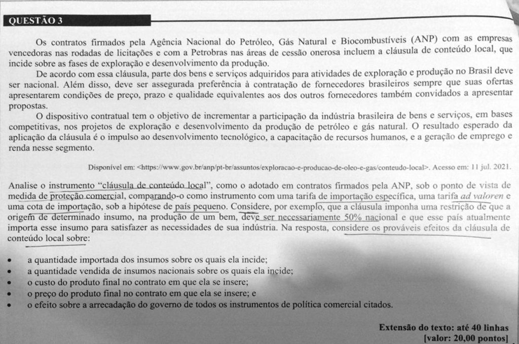 Penso que será um desafio para a banca examinadora corrigir as respostas, face à parte do comando que está mal elaborada. Uma questão, que poderia ter sido a melhor da prova de economia do CACD 2020, corre o risco de pontuação pouco estável em seus quesitos e critérios. Aguardaremos o padrão de resposta e, sobretudo, a dinâmica de correção colocada na grade ou rubrica a ser utilizada.