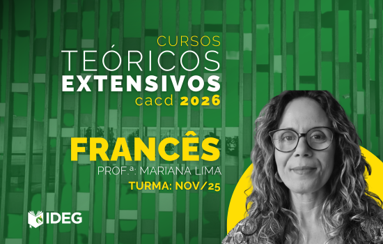 O Curso Teórico Extensivo de Francês, ministrado pela profª Mariana Lima, visa formar uma base sólida de gramática, ortografia e vocabulário para a prova de Francês do CACD. O curso atende, assim, às exigências da banca examinadora em abrangência e profundidade. Por meio de aulas, atividades de produção escrita e análise de materiais oficiais, os alunos assimilam e treinam as competências essenciais para um bom desempenho na prova.