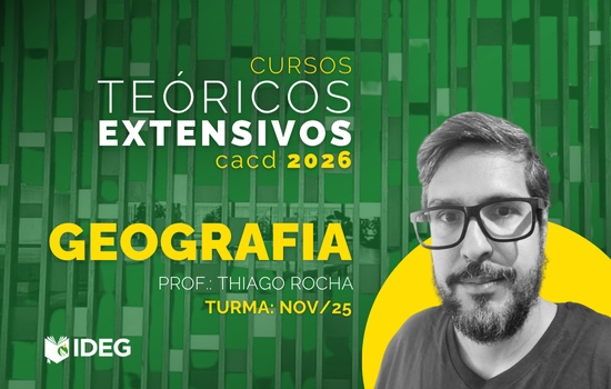 O Curso Teórico Extensivo de Geografia, ministrado pelo Prof. Thiago Rocha, visa construir uma base sólida de conteúdo a partir da abordagem de cada detalhe dos temas do edital. A dedicação do professor, há mais de 15 anos ensidando para o CACD, resultou no curso mais reconhecido e definitivo para a disciplina de Geografia. Ao longo do curso, o aluno passará por todos os sete grandes tópicos exigidos no concurso. E, ao final, terá um repertório de conteúdo estruturado, o que é necessário para atender às exigências das provas em todas as fases do concurso para diplomacia.  Além disso, a abordagem estruturada, didática e atualizada utilizada pelo docente permite ao aluno produzir um material próprio capaz de apoiar futuras revisões e o desenvolvimento de habilidades práticas de exercícios.